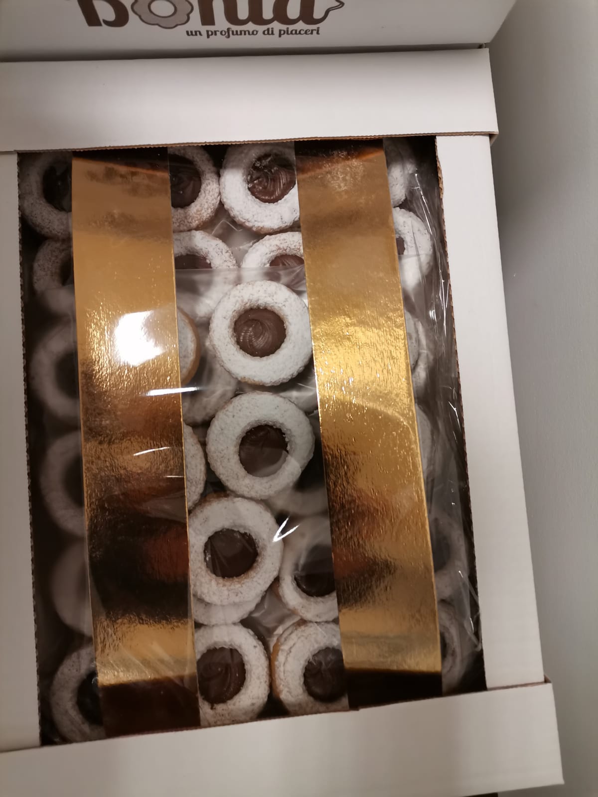 Biscotti “occhio di bue” a forma classica realizzati con vari gusti di marmellata o cioccolato.